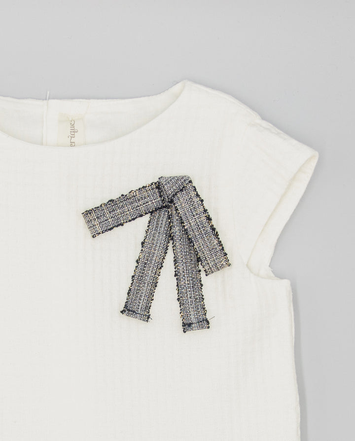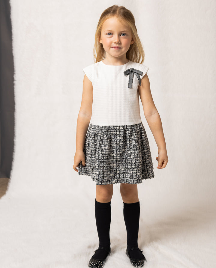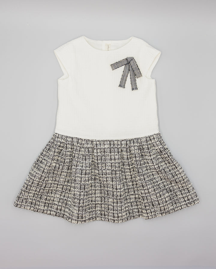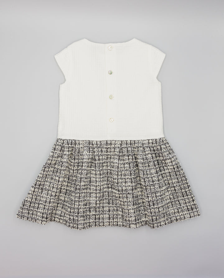 Vestido Blanco Con Falda De Tejido Estructurado Negro