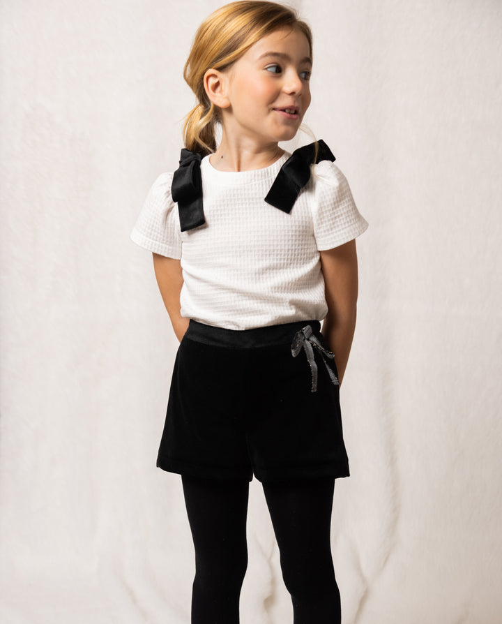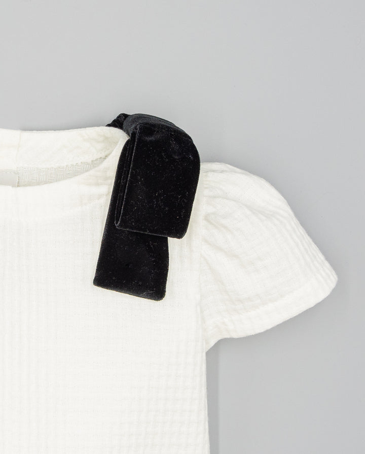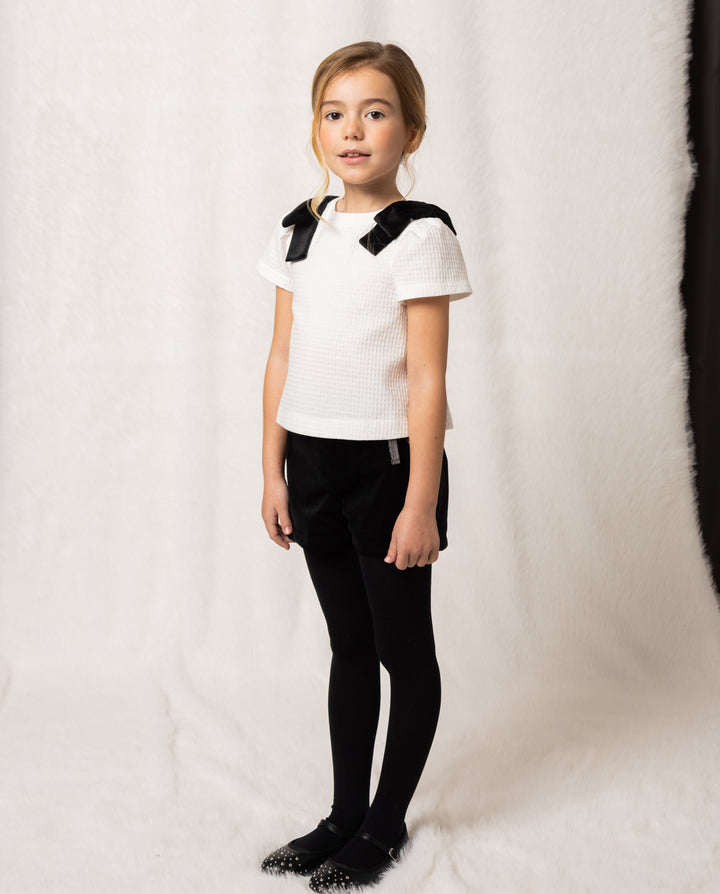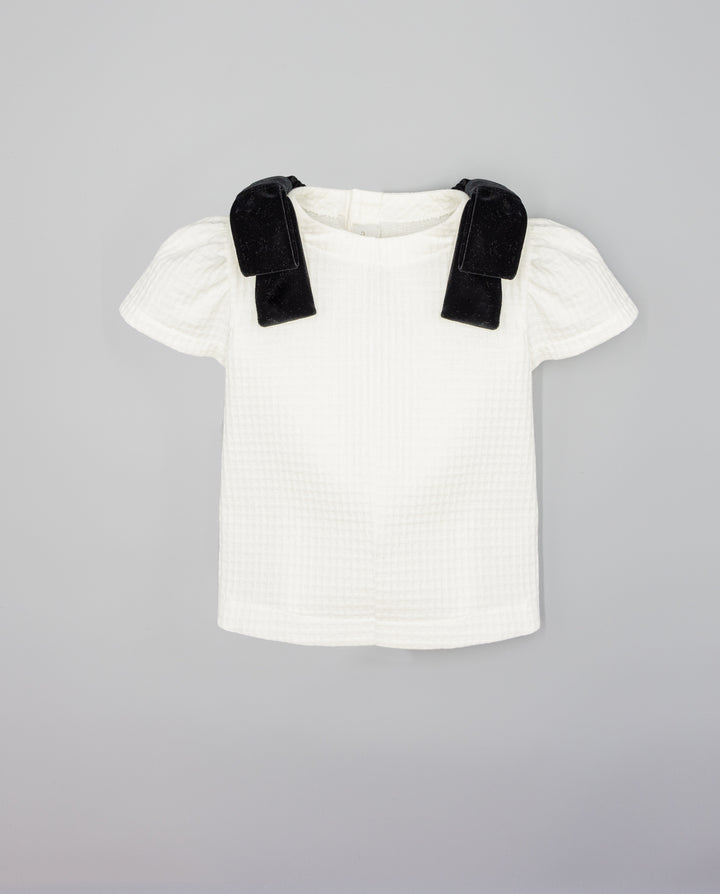 Camisa Blanca De Tejido Estructurado Con Lazos De Terciopelo Negro