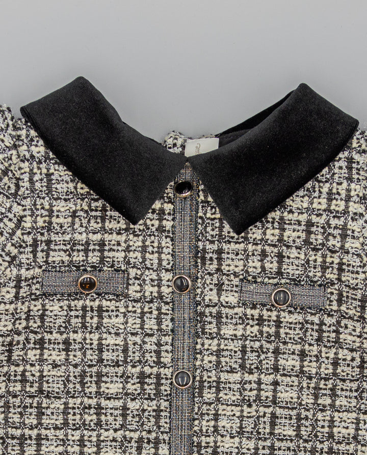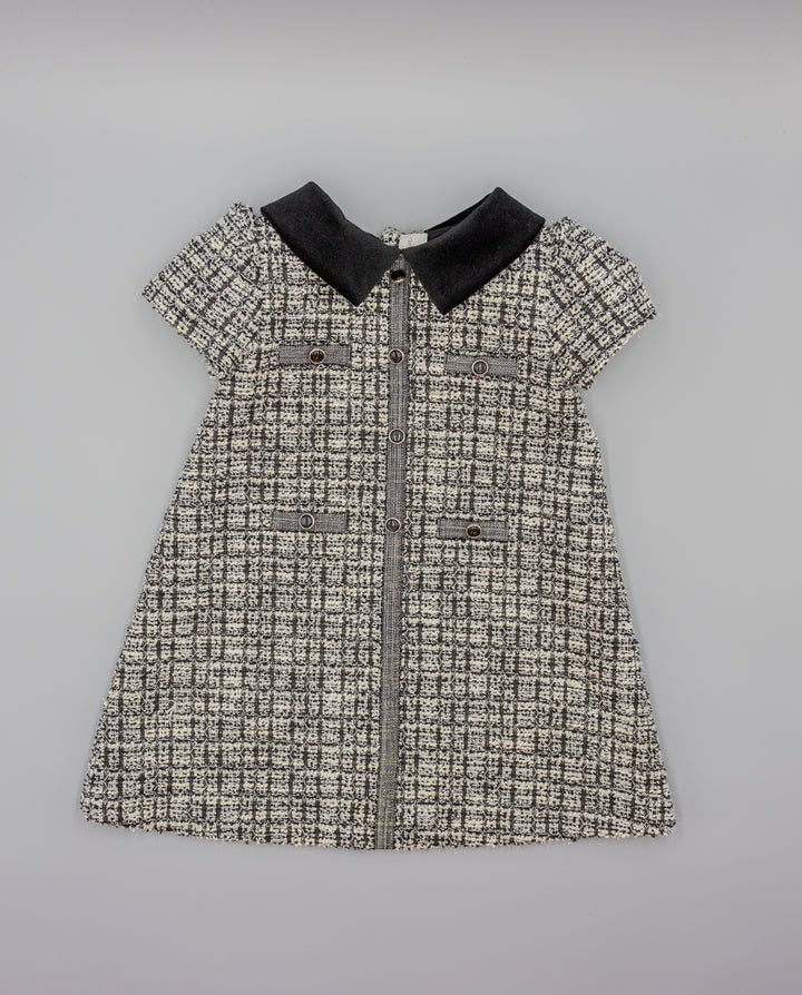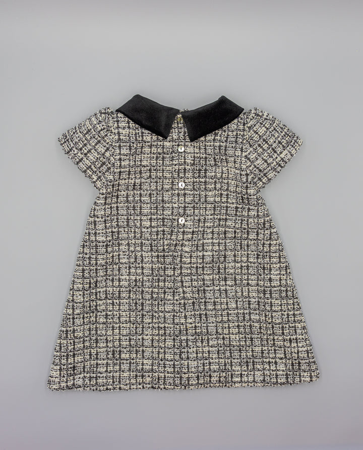 Vestido De Tejido Estructurado Con Cuello De Terciopelo Negro