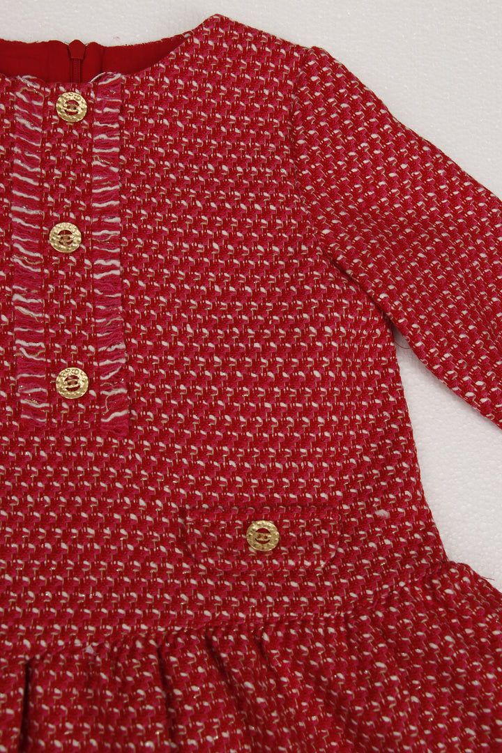 Vestido chanel rojo con detalles dorado